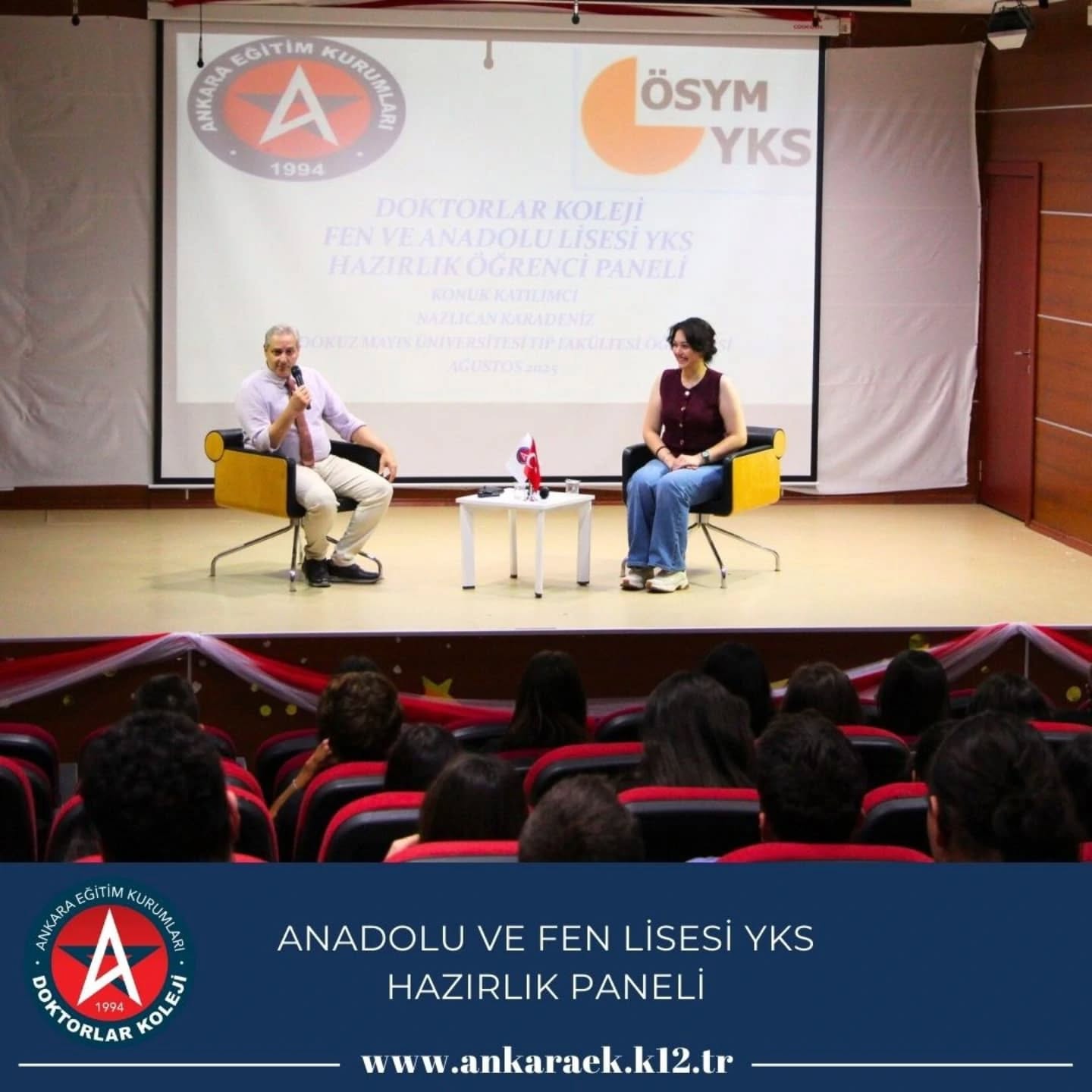 YKS Hazırlık 11. ve 12.sınıf öğrencilerimizin üniversite hazırlık sürecinde kararlılık ve motivasyonlarını arttırmak, hazırlık süreçlerini daha bilinçli ve verimli kılmak amacıyla, 2025 YKS' de Tıp Fakültesini kazanan öğrencimiz Nazlıcan Karadeniz'in katılımıyla Öğrenci Panelimizi gerçekleştirdik. Mezun öğrencimiz Nazlıcan Karadeniz' e teşekkür ediyor, tıp eğitiminde başarılar diliyoruz.