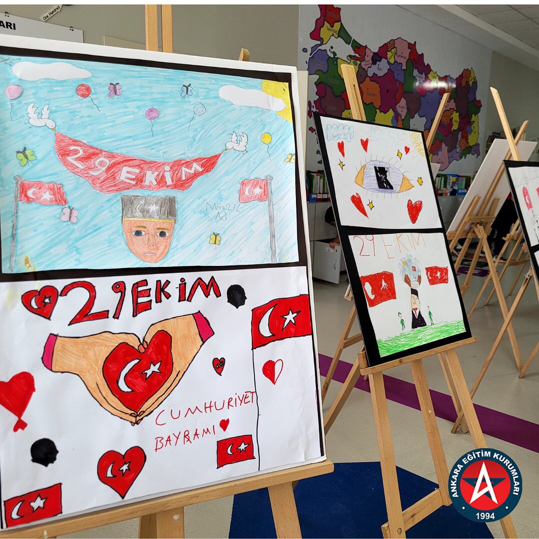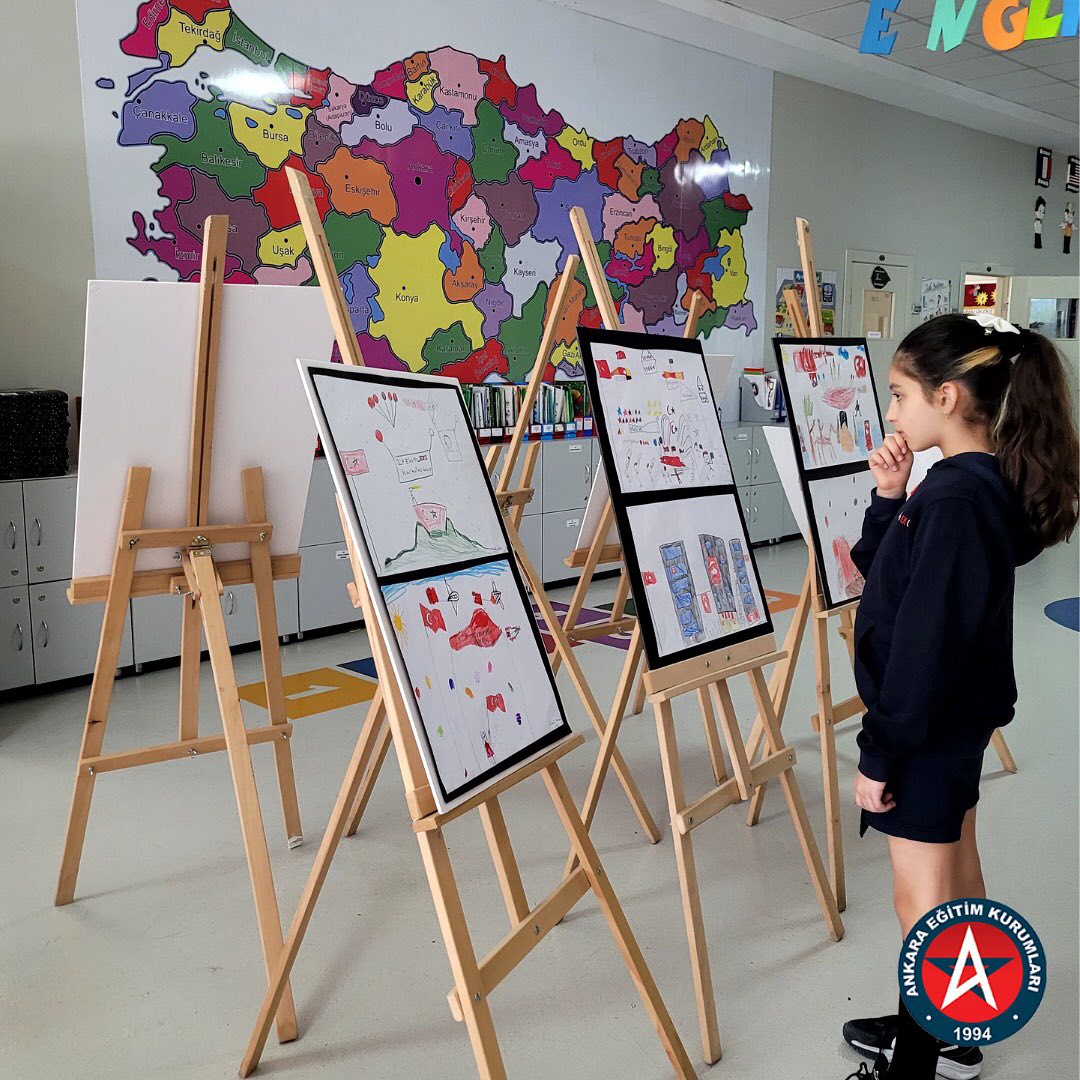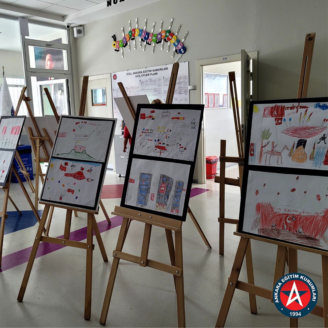 İlkokul öğrencilerimizin Cumhuriyetimizin 100. Yılı sebebiyle yaptıkları resimler Cumhuriyet Sergimizde sergilendi.